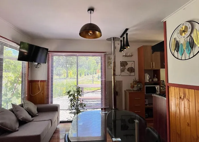 Offering a Jacuzzi for a relaxing experience, Cabana Estilo Mediterranea is located nearly a 25-minute walk from Ojos del Caburgua Waterfall. Providing guests with Wi-Fi and a free private car park, the 1-bedroom villa is approximately 10 minutes by car from Volcano View.